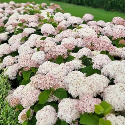 L'ortensia arborescens Candybelle® Marshmallow è una recentissima varietà a sviluppo compatto, ideale per la coltivazione in giardino ma anche in vaso. Lo sviluppo massimo è infatti di circa 80 cm; la pianta si presenta molto ben strutturata, con rami rigidi che sostengono bene il peso dei grandi fiori. La fioritura avviene da Giugno a Ottobre, i fiori inizialmente bianco candido, assumono una colorazione rosa salmone, con il proseguire della stagione. Sopporta temperature invernali fino a -25 gradi. Predilige terreni umidi e soffici e posizioni di mezz'ombra.