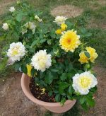 Categorie: Rose cespuglio a fiore grande, ROSE Tag: Produzione e vendita di piante di rose online, Spedizione rose cespuglio in vaso, Rosa dalia, rosa golden lady ruffles, rosa petali frastagliati